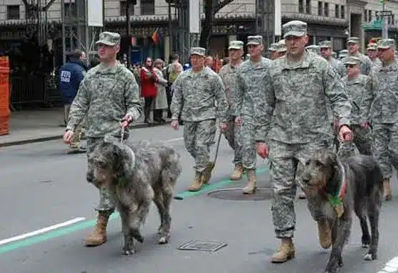 The wolfhounds despite their intimidating size are not attack dogs and do not attach themselves to property but to people. Remaining steadfast and loyal they are guardians who protect their charge furiously. The motto of the Fighting 69th is “gentle when stroked and fierce when provoked”.